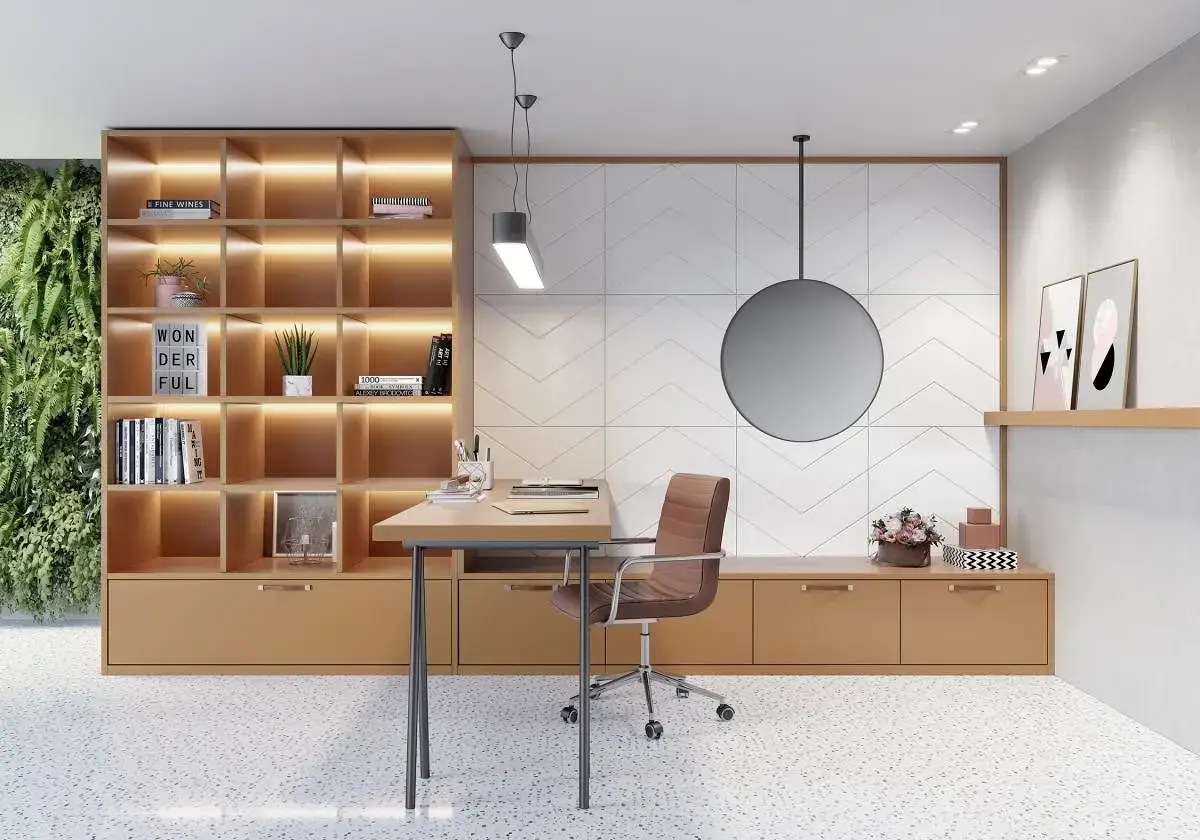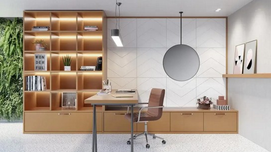 Embora existam muitas maneiras de integrar o design biofílico nos projetos, a solução mais popular é o uso da madeira e dos padrões madeirados, bem como a pedra e cores que remetem de forma lúdica a natureza dentro do ambiente. Por falar em madeira, estudos comprovaram que ela relaxa o sistema nervoso autônomo, diminuindo as respostas relacionadas ao estresse. Quanto à sua aparência, a madeira oferece conexões visuais com a natureza devido à abundância de tipos, texturas e cores. Nesse sentido, em um mundo urbano de tecnologia e arquitetura industrial, essa conexão chega para resgatar os ambientes naturais e trazê-los aos espaços construídos pelo homem.