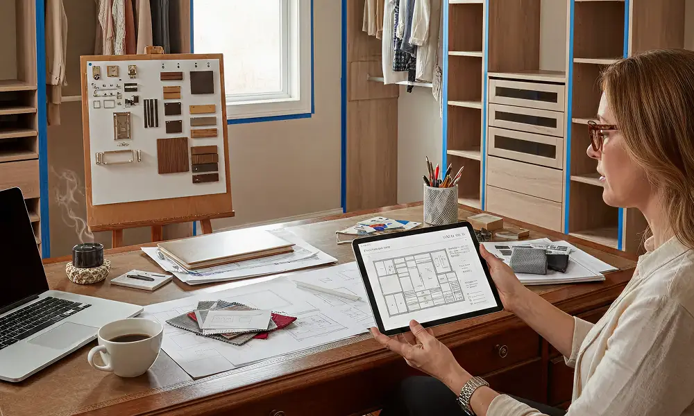 O layout do closet deve garantir circulação confortável, abertura adequada de portas e gavetas e boa integração com o dormitório ou a suíte. Um layout mal definido compromete a ergonomia, dificulta a organização e reduz a eficiência do espaço ao longo do tempo.