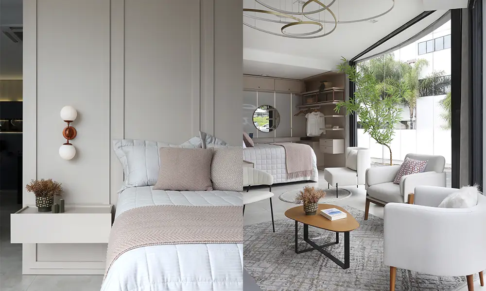 No closet, sensores de presença podem acionar luz interna de forma automática ao abrir portas ou gavetas, reduzindo consumo e aumentando praticidade. Em painéis de TV, nichos técnicos ocultam cabos, roteadores e equipamentos eletrônicos, preservando organização visual sem comprometer acesso para manutenção. Essas soluções não são aparentes à primeira vista, mas determinam a qualidade do uso ao longo do tempo.